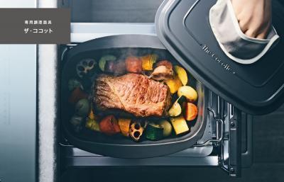 「デリシア・グリレ」は、本格的な料理を楽しみつつも、お手入れの手間を減らしたい等のお客様の声を反映し、フルモデルチェンジしました。スタイリッシュな外観は継承しながら、取り扱いやすさも付加したデザインへ変更しました。