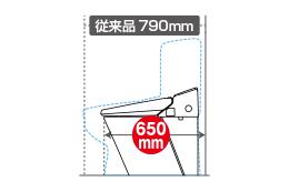 従来のタンク付トイレよりも奥行寸法が140mm短いタンクレス。限られたトイレ空間でも動作範囲が広がります。