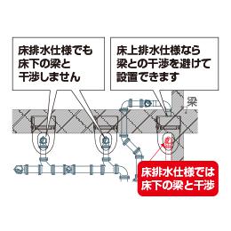 排水方向も新築・リフォーム用の2種類の床排水に加え、床上排水仕様もご用意しています。