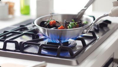 ノーリツの家庭用コンロでは最大の、4,510kcal ⁄ h が使えます。本格的な料理を楽しみたい方にもご満足いただける高火力です。(左バーナー・13A のみ)