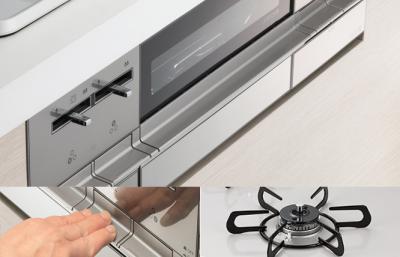 天板フレームの変更や、フェース部分の取っ手と点火ボタンを一直線上にまとめることでよりシャープに洗練された高級感を演出しました。また左右コンロで便利機能をご使用いただけるようにしたり、あんしんモードも搭載したことでより快適な「いいとこ取り」のコンロとなっています。