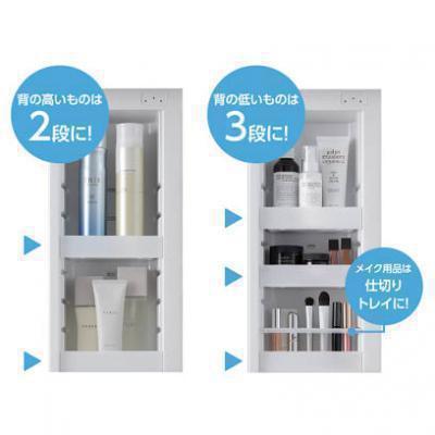 トレイアレンジは、トレイを5cm刻みで設置できるので、高さの違うものを効率よく収納することができます。