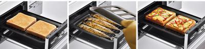 焼き網の代わりにココットプレートでグリル料理。焼き魚はもちろん、トースト、ノンフライ調理、ピザ、揚げもののあたため直しも、スイッチひとつで自動調理。充実の便利機能でグリル調理の楽しさがますます広がります。
