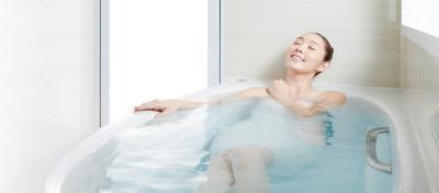 浴槽の上縁を極限まで広げ肩やひざまわりひろびろ。