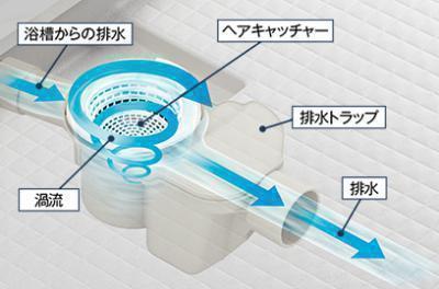 浴槽からの排水で渦を起こし排水口をキレイにします。