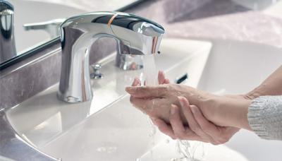 手動吐水と自動手吐水が自由に使用できるので、手の汚れで水栓が汚れることを気にすることなく、気持ちよく手を洗うことができます。