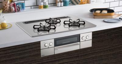 グリル排気口をアイランド構造とし、すっきりとさせることで清掃性の向上や調理中の鍋の仮置きなど、利便性も向上させています。