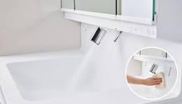 自動と手動の切替操作が不要。手を差し出すだけで水が自動で出ます。すぐ ※ にお湯が出て、ヒヤッとしない即湯水栓も選べます。