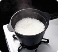 炊飯機能を使うと炊飯完了後自動消火し、電子音でお知らせします。コンロで本格的なガス炊飯のおいしさが楽しめます。