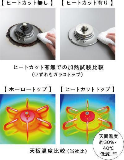 バーナーまわリは、煮こぼれなどがこびりつき、お手入れに時間がかかる…。バーナーからの輻射熱で熱くなることが原因です。温度軽減効果があるトップレートなら、バーナー周りがこびりつきづらく、お手入れをラクにします。