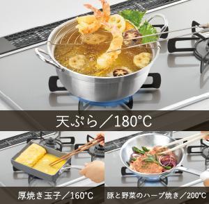 料理に応じてお好みの温度に設定すれば火加減を自動調節。左右同時に温度調節機能が使えます。