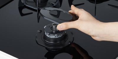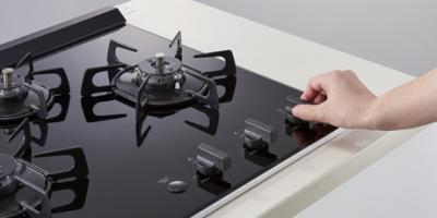 上面で操作できるから、腰をかがめる必要もなくスムーズ。点火つまみの形状は、掴みやすさ、操作のしやすさにこだわりました。