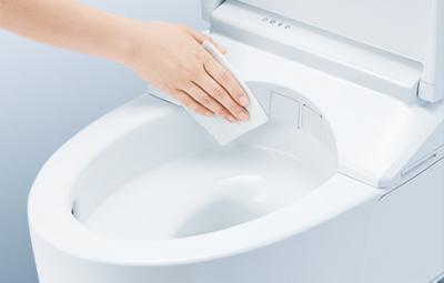 お手入れしづらかった「ウォシュレット」のフチをなくしました。凹凸の少ない滑らかな形状で、サッとふくだけできれいになります。