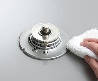 天板のフチも、グリル排気口周辺も、ほとんど凹凸がないフラットデザイン。グリル排気口のまわりがひろびろすっきりしました。サッと拭くだけですっきりキレイになるから、お手入れも時短できます。
