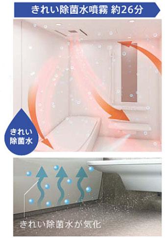 3.きれい除菌水を噴霧し浴室全体に充満(約26分)