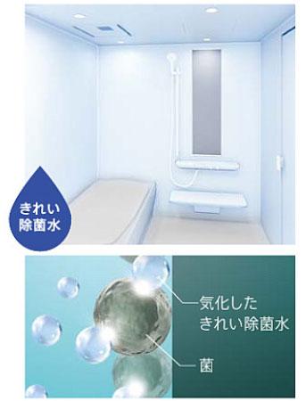 浴室全体を暖めてきれい除菌水が気化しやすい環境にします。