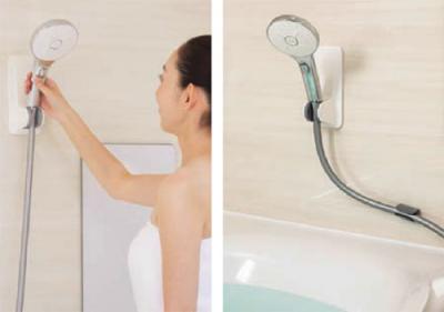 マグネットシャワーフックは好きな場所につけられるうえ、角度調節式なのでお好みの角度で使うことができます。