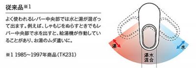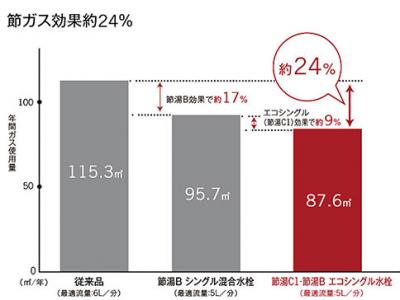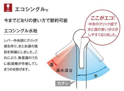TOTOの「エコシングル」やINAXの「エコハンドル」機能搭載の水栓では、カチッというクリック感を作りお水とお湯の境界線をわかりやすく明確になっています。しらないうちに給湯器を作動させるのを防ぐことができます。