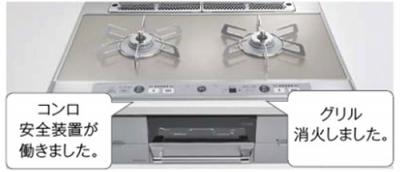 機器本体が、震度約4以上の揺れを感知すると自動消火します。