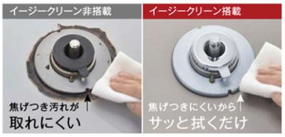 トッププレートの表面温度上昇を抑えて焦げ付きを防いでお手入れを楽にします。