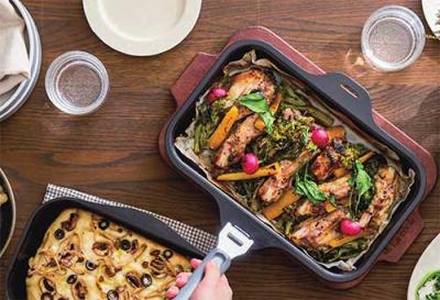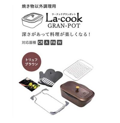 焼き物調理用の容器「ラ・クックグラン」、焼き物以外調理用の容器「ラ・クックグランポット」は遠赤外線効果でふっくら、フタ付きなのに炭火焼のようにジューシーかつヘルシーに焼き上げます。