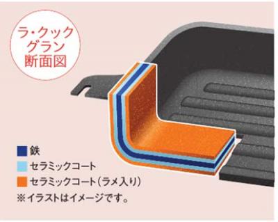 ラ・クックグランはwセラミックコートを採用していて、油をはじいてお手入れが簡単ですが、さらに専用のクッキングシートを使えば食材がくっつきにくくまた、お料理の仕上がりもキレイ。クッキングシートは別売で販売しております。