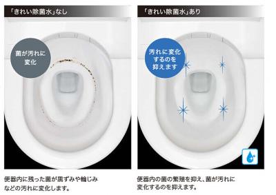 水に含まれる塩化物イオンを電気分解して作られる除菌成分(次亜塩素酸)を含む水です。水からつくられる安全なお水が「きれい除菌水」です。この「きれい除菌水」によって、便器もノズルも便座も自動除菌で清潔を保ちます。