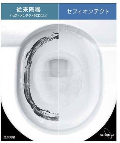 汚れがつにくく落としやすい「セフィオンテクト」便器は便器内部表面を100万分の1mmのナノレベルでなめらか。陶器の美しい輝きがずっと続きます。