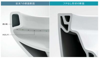 汚れがたまりやすい便器のフチ裏。ここを「フチなし形状」にすることで裏のくぼみがなくお掃除がしやすくなります。