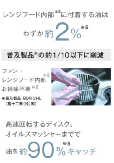ひとつは、給湯トレイをセットして洗浄ボタンを押すだけでファンを自動で洗浄してくれる「TAGシリーズ」と、二つ目はオイルスマッシャーによるファンとレンジフード内部への油の侵入をブロックして汚れを防ぎファンのお掃除が不要になる「OGRシリーズ」があります。