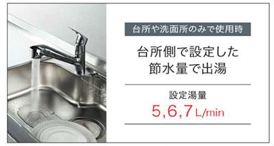 台所の節水モードと浴室の節水モードを自動で切り替えます。