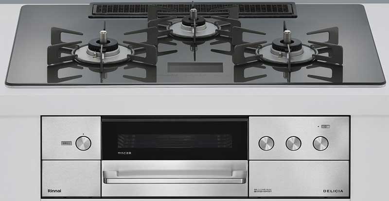 75cmワイドサイズタイプ・リンナイ DELICIA(デリシア) 100V ザ・ココット付属 ホーローごとくタイプ ツイードシルバー