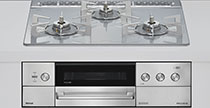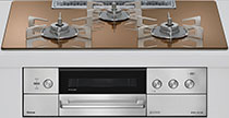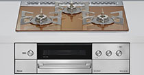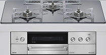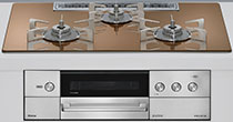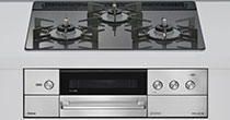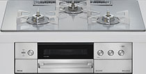 バーナーリング:シールド構造 ヒートシンク構造 個別ワイヤーごとく バーナーリングクリアコート加工 スモークオフ お手入れかんたんグリル グリル皿クリアコート加工 汚れカバー(ホーロー) フラット焼き網(フッ素) 分解グリル 排気口カバー(2分割) |