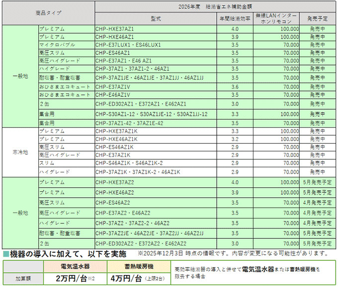給湯省エネ2025事業対象商品