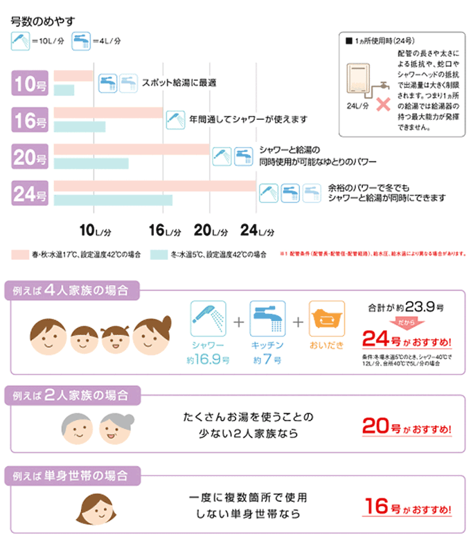寒い冬場こそ湯切れは起こしたくないもの。号数を決定する際は冬場の水温を基準にすることをオススメいたします。
