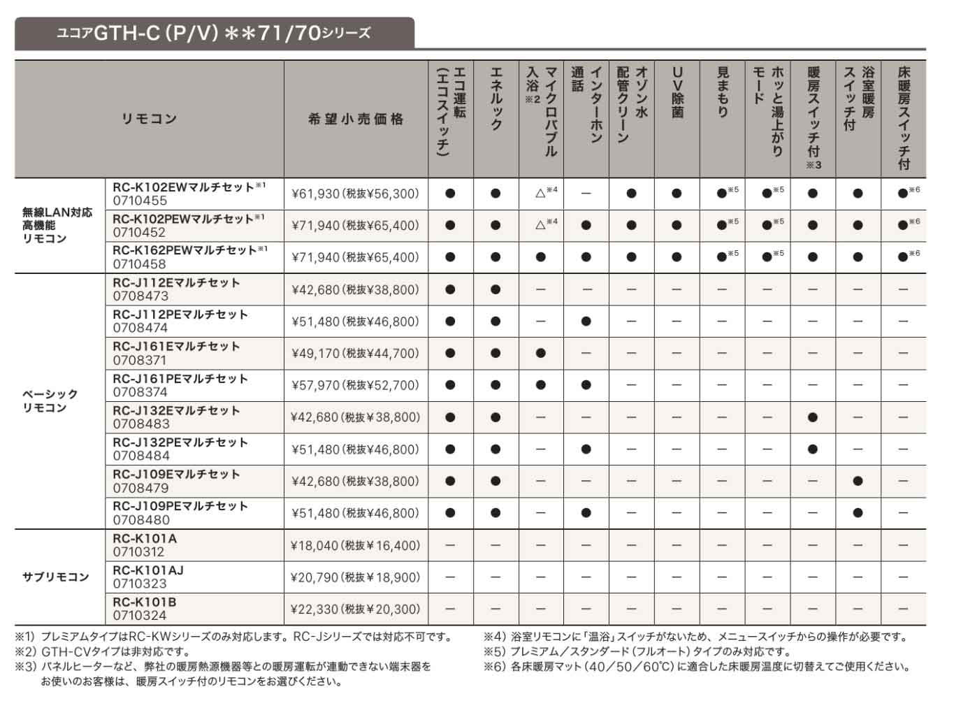 壁掛け/PS標準 GTH-CVシリーズ2温度6系統+ リモコン RC-J112E