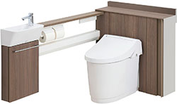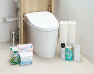 トイレットペーパーやお掃除道具などをしっかり収納し、使いたいときにさっと取り出せます。 |