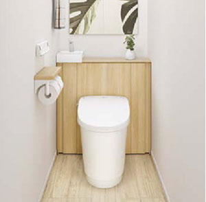 排水管やコード、お掃除用具やトイレットペーパーなどをキャビネット内に隠してすっきり!パネルのカラーもホワイト・ライトオーク・ウォルナット・ショコラオークから選べてお好みのインテリアに仕上げることができます。お掃除しにくかった便器の奥までお掃除が楽々♪ |
