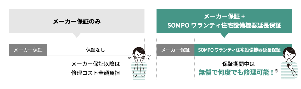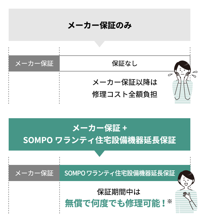 SOMPOワランティ住宅設備機器延長保証に入っていれば安心です!